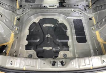 Штатная шумоизоляция в Чанган CS35 Plus уложена выборочно, принцип похож на японские авто. Напыление вибродемпфера есть на полу, в нише запасного колеса. И на этом всё - в остальном голый металл. Перед началом работ мы в обязательном порядке производим проверку качества монтажа заводского вибродемпфера с помощью специального инструмента. Ниже вы можете увидеть фотографии после полного разбора салона.